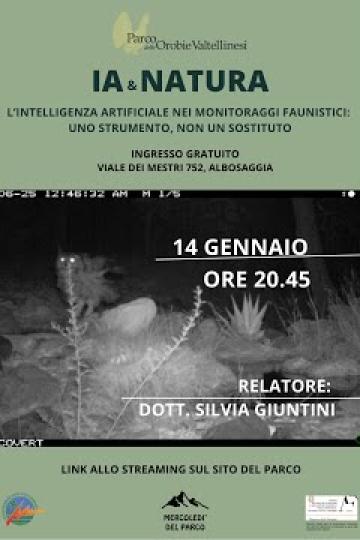 IA e Natura: L’intelligenza artificiale nei monitoraggi faunistici. Uno strumento non un sostituto - 14 gennaio 2026 ore 20.45 la sala congressi del Parco in viale dei Maestri, 752 in Albosaggia, oppure in diretta streaming sul canale YouTube del Parco