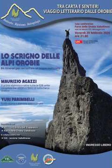 Appuntamento il 20 febbraio alle ore 21.00 per l'incontro letterario; ospiti della serata saranno la Guida Alpina Yuri Purimbelli e Maurizio Agazzi, autori del libro "Lo scrigno delle Alpi Orobie: 84 itinerari per raccontare un sogno realizzato".
