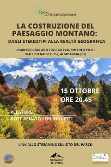 Si parlerà del contrasto tra abbandono e ripopolamento delle Terre Alte con Mauro Varotto, docente di geografia culturale all'Università degli studi di Padova venerdì 28 novembre presso la sala congressi del Parco in viale dei Maestri, 752 in Albosaggia, che in diretta streaming sul canale YouTube del Parco